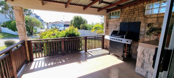 Outside, a covered patio awaits, complete with a built-in braai.