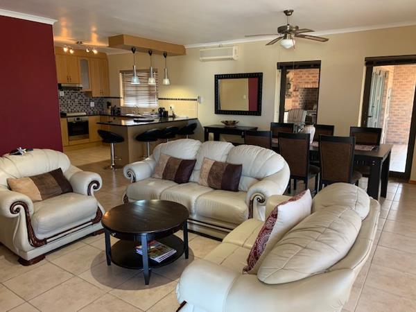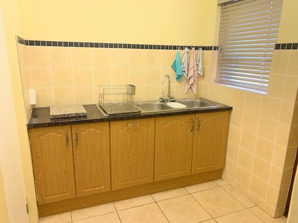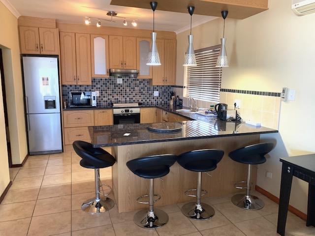 This enchanting home, featuring 3 bedrooms, 2 bathrooms with a luxurious main en-suite, and an inviting open-plan loungedining area, epitomizes modern living. The well-appointed kitchen with granite tops, a separate scullery, and pantry enhances the functionality and elegance of this abode. Entertain in style within the enclosed braai room, complemented by air-conditioned comfort in the lounge, two bedrooms, and the braai room itself. A detached flat in the backyard, occupied by permanent residents with no access to the main house, ensures privacy, while a shared gated entrance adds an extra layer of security.