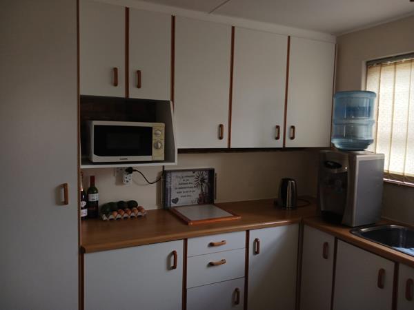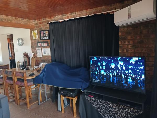The open-plan kitchen and living area create a warm and welcoming space, perfect for everyday living and entertaining. The built-in braai adds extra appeal, making it ideal for relaxed evenings with family and friends.