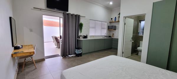 The bedroom and kitchen areas are well-sized, with ample cupboard space in both the kitchen and bedroom.