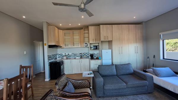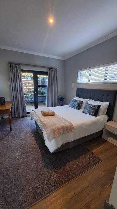 There is a separate well-equipped open-plan kitchen that contains the necessary appliances to prepare and cook meals, as well as complimentary tea, coffee, sugar, and milk are provided. Leading from the open plan living area is a deck overlooking the river, with a gas braai. The view from the deck, overlooks the river, where you can appreciate the the peaceful sounds of birds, watch animals coming to the waters-edge and enjoy the beauty of the sunset.