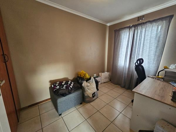 Fenced Communual swimming Pool with Braai areas, Jungle Gym and Soccer field. Prepaid water and electricity meters.