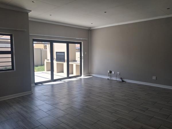 This beautiful duet offers you Three bedrooms with build in cupboards, Main bedroom with en suite bathroom with shower, bath, basin and toilet. Second bathroom also a full bathroom. Spacious open plan living room leading into the kitchen and separate scullery. Stoep and build in braai area outside to sit and relax. Alarm system and Fiber connection also installed in the unit. Water billed monthly, Prepaid electricity. WhatsApp to arrange a viewing.