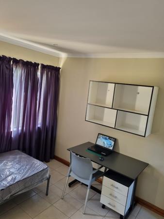 Single rooms available in a student house in Brandwag. Newly renovated and superb finishing. Modern cupboards, desks, shelving and bed side table. Walking distance from the Main Gate at UOFS. Elec and WIFI and water included as well as cleaning and garden services. Only 4 ladies in house and sharing two bathrooms. Accredited