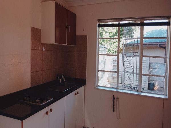 The open-plan living area includes additional built-in cupboards, creating a neat and functional living space that flows seamlessly into the modern kitchen, which is equipped with a gas hobideal for efficient cooking. The flat is finished with laminated flooring throughout, giving it a clean, contemporary look and easy maintenance.