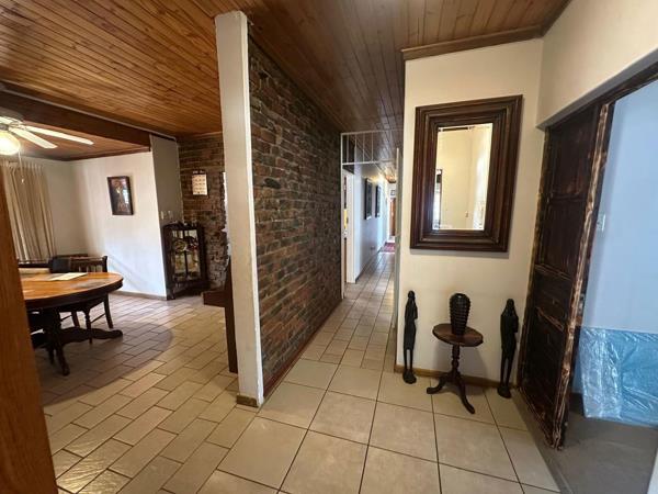 A standout feature of this home is the exceptional outdoor living and entertainment spaces. A covered wooden deck overlooks the garden and swimming pool, creating the perfect setting for entertaining, relaxing, or family time. Additional paved courtyards and a built-in braai area further enhance the homes entertainment appeal.