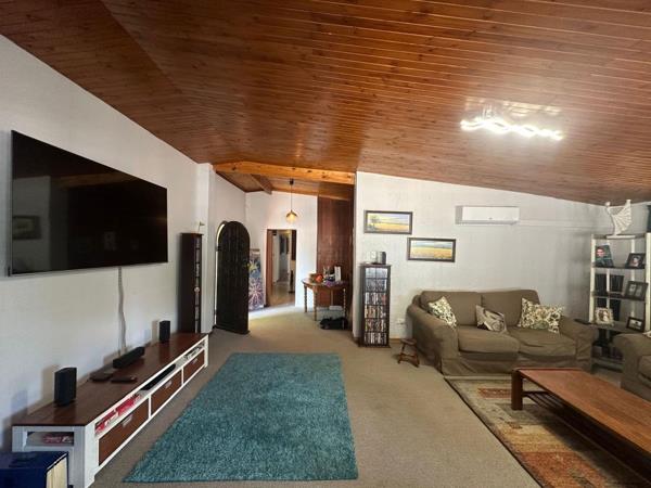 The main home features large, light-filled living areas with warm wood-paneled ceilings, ceiling fans, and an inviting atmosphere throughout. The open yet well-defined layout allows for easy separation of lounge, dining, and entertainment spacesperfect for everyday living and hosting guests.
