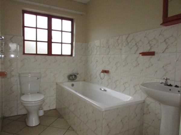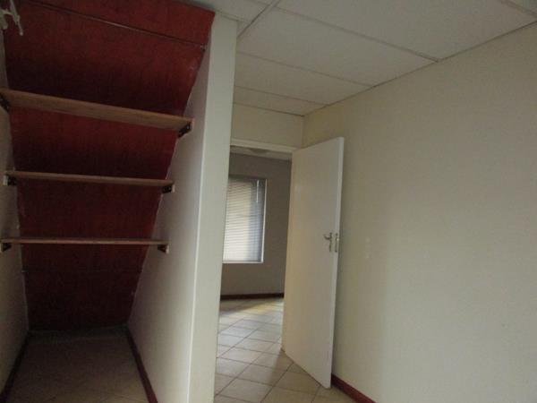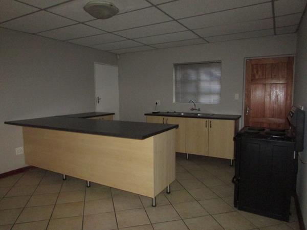 This double story duet offers you the following. Upstairs you have 3 spacious bedrooms with build in cupboards and carpets. One bathroom with bath, basin and toilet. Downstairs you have an extra space that can be used as a study. Open plan kitchen/ Dining room with a separate are for living room. Downstairs bathroom also with toilet, basin and bath. Yard is shared with tenants at the back. Single garage. Prepaid water, prepaid electricity. NO PETS ALLOWED.
