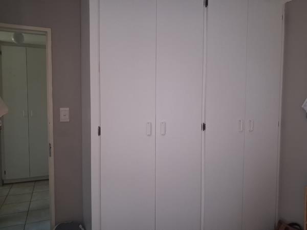 Ideal apartment for someone looking for peace and quiet. Two bedrooms with build in cupboards, Bathroom with Bath, basin, shower and toilet. Spacious open plan living room leading into the kitchen with build in cupboards and stove. Own little garden to sit and relax. Double garage. Water billed monthly, Prepaid electricity. Small pets allowed with upfront permission from Body Corporate.