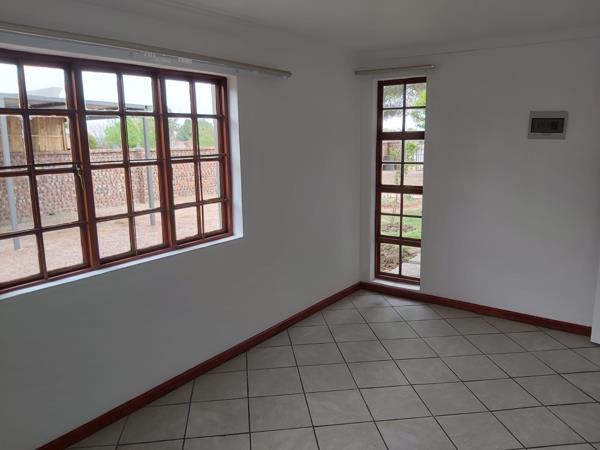Renovated 3 bedroom house with 2 bathrooms, 1 garage, own entrance with electric gate. Pets allowed. Garden services included. Pre paid water and electricity. 17 km out of town.