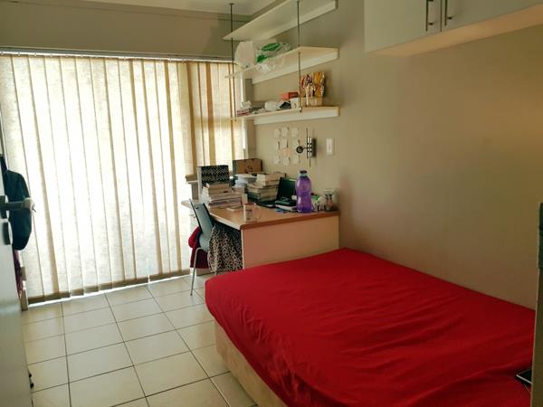 There are 24 hour security at the building and undercover parking. Fingerprint access at the gate and a entrance onto the university grounds just opposite the building. This unit is situated on the side of the building (G Block) and has a outside view. Prepaid electricity. Water included. Wifi and DSTV available at own cost. Prepaid electricity.