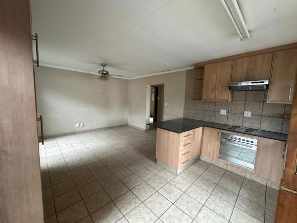 The functional kitchen is neatly finished with ample built-in cupboards, durable countertops, an under-counter oven with hob, extractor fan, and a convenient breakfast counterperfect for casual meals or entertaining. Direct access to the private outdoor area adds to the homes usability.