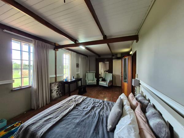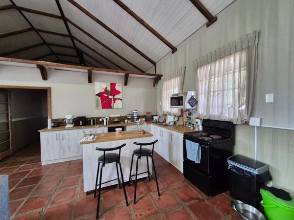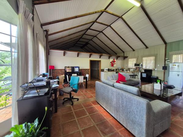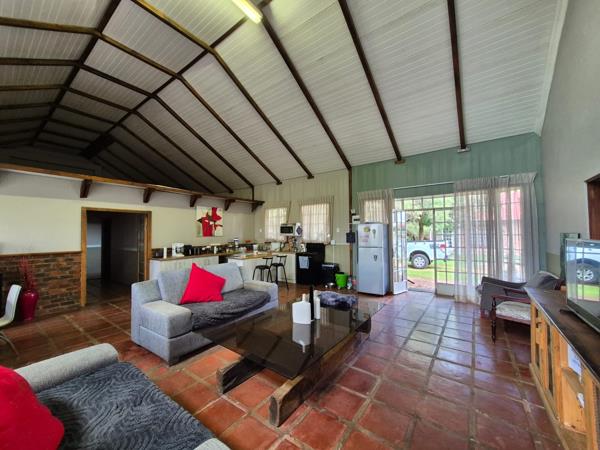 Spacious and rustic Garden Unit, situated on a quiet working Equestrian farm, in Groenvlei. Imagine waking up with paddocks and horses as your view. Open plan dining, living and kitchen area. There are terraces on both the front and the back of the unit.