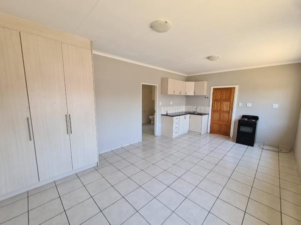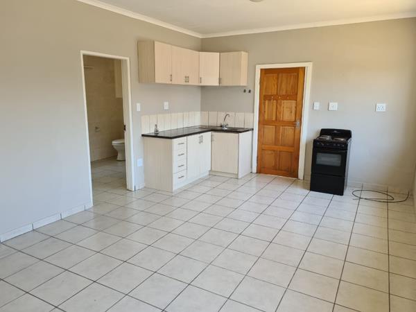 This is a neat bachelors unit offering a open plan tv room and kitchen with neat tile flooring.