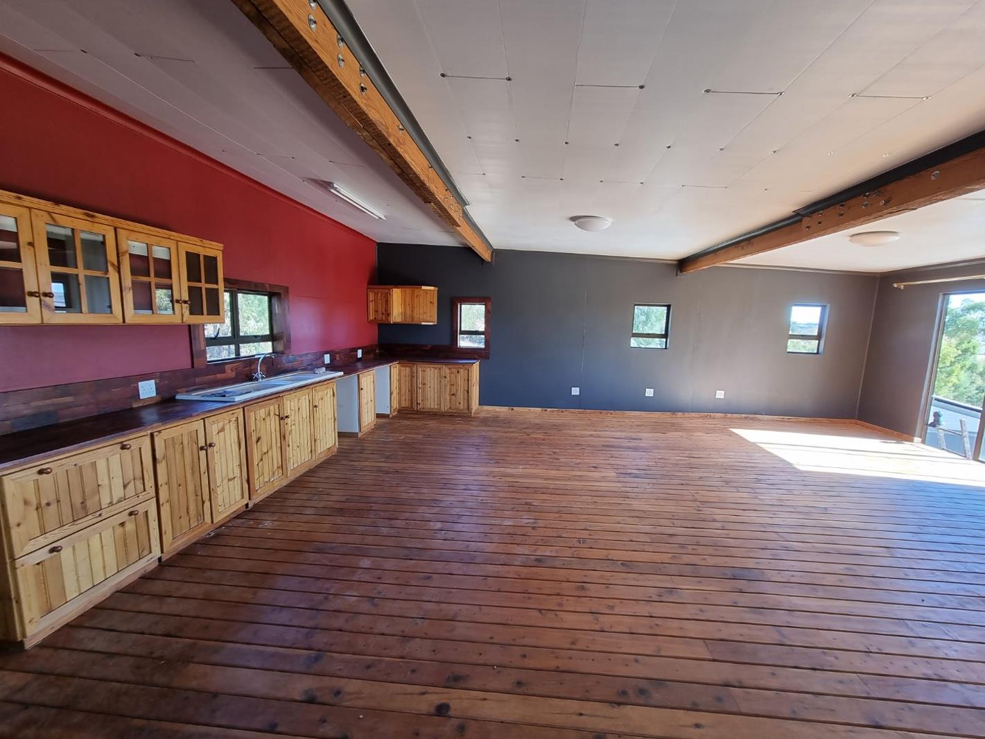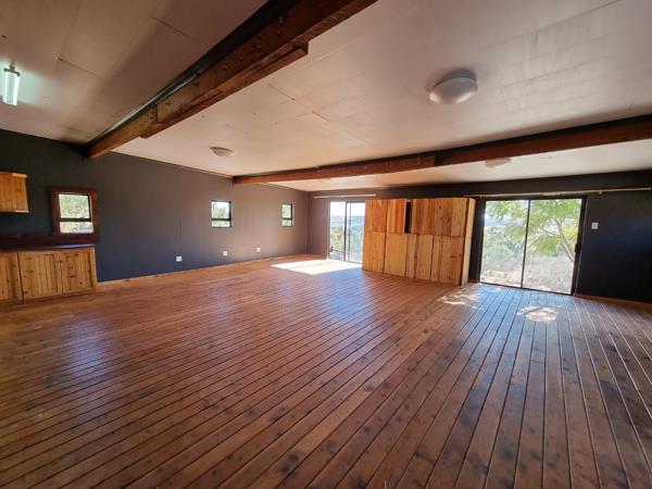 The unit has wooden flooring throughout except for the bathroom that has cement flooring.