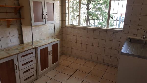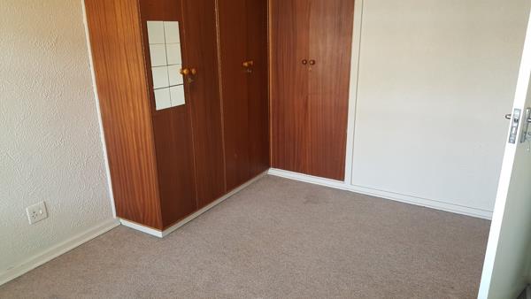 This very spacious 2 Bedroom Apartment is in the perfect location, within walking distance from the city centre. The lounge area offers neat carpet flooring with enough space. There is a door that leads out to the cosy veranda space that can be used for just about anything, a study, playroom or even as a breakfast nook. The kitchen is neat and spacious, the kitchen offers built in cupboards. The 2 Bedrooms could easily fit a double bed and dressing table, both offer ample built in cupboards, both with carpet flooring. The Bathroom offer tile flooring with a basin and bath and toilet. Extra bonus for this property is a lockup garage. Prepaid Electricity Meter.