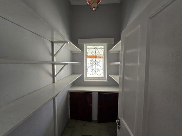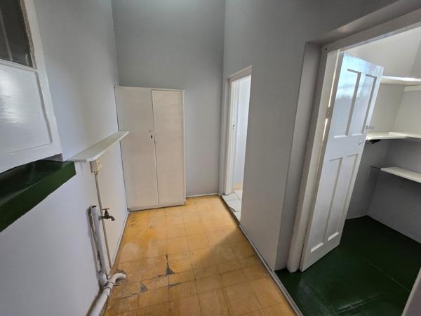 The kitchen offers built-in cupboards and separate pantry.