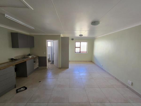 This neat bachelor units is offering a open plan kitchen with stunning built-in cupboards
