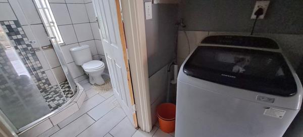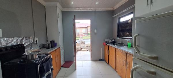 The living area is open plan with the kitchen, offering built-in cupboards and a stove.