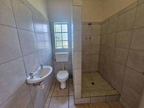 Small and cozy 2 bedroom unit situated on a farm just outside town. Open plan kitchen area with private yard. One bathroom fitted with a shower and gas geyzer. Shade net parking for one vehicle. Immediately available.
