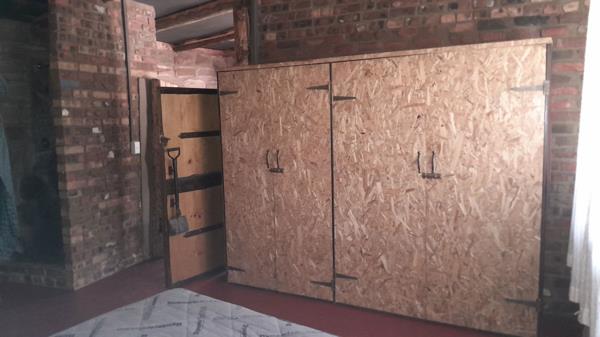 Bedroom with open plan bathroom have a shower and lots of cupboard space.