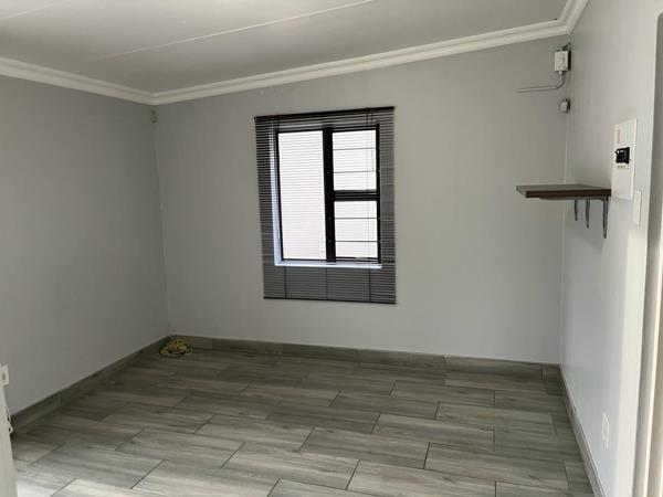 One bedroom flat available 1 April 2026. Situated close to Voortrekker High School, this is ideal for farm parents or teachers. Separate lounge and dining area with a small kitchen. Single parking under a car port. Please call me for viewing.
