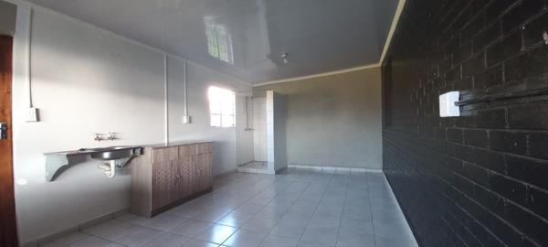 This neat unit offers a open plan kitchen and bedroom area with neat tile flooring,