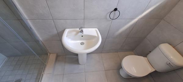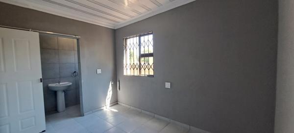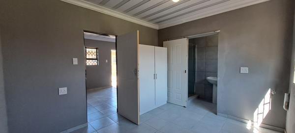 The bedroom has built-in cupboards with an en-suite bathroom.