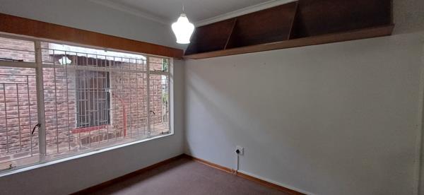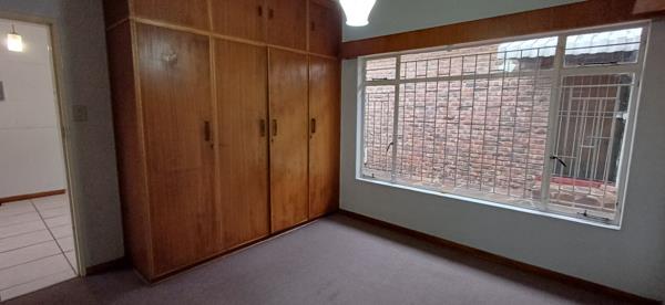 The bedroom offers built-in cupboards