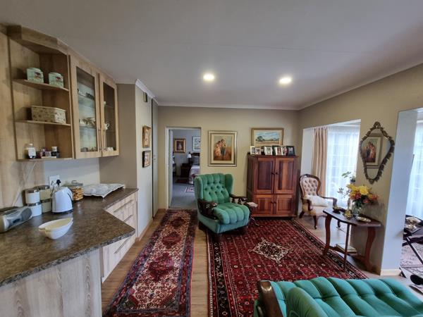 The kitchen is fited with stunning built-in cupboards, built-in stove and hob.