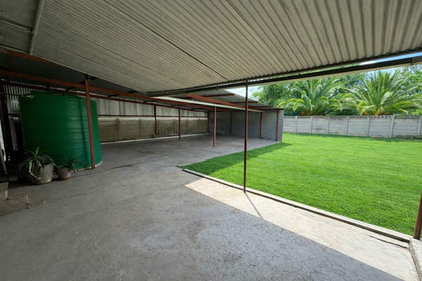 2 bathrooms, lounge, dining room, single garage, 5 carports, 5000L water tank, swimming pool & 1 bedroom flat kitchen and bathroom.