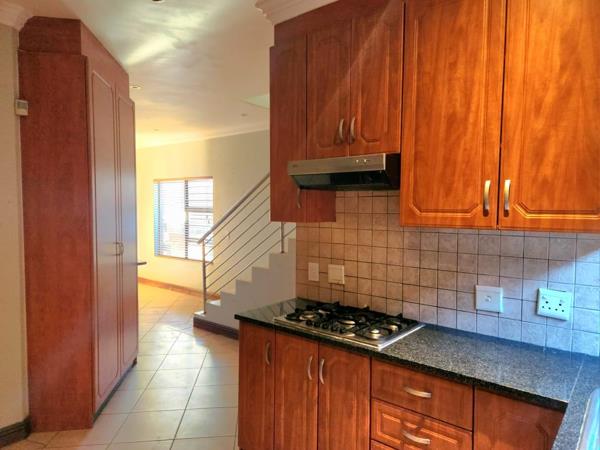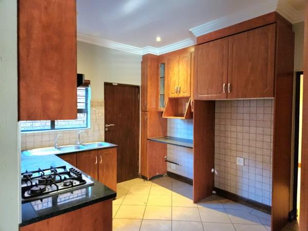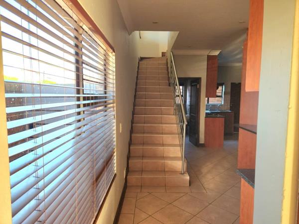 This well-designed double-storey home in Sunset Villa offers practical living with a comfortable layout. It features three bedrooms and 2.5 bathrooms, with two ensuite bathrooms for added convenience, plus a guest toilet. The face-brick exterior and blinds throughout provide a low-maintenance and functional aesthetic.