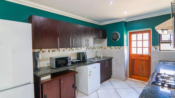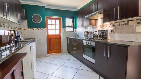 Open plan kitchen and scullery flows seamlessly to the 2 spacious open plan living areas and the enclosed patio completed with a built-in-braai that leads to the spacious garden