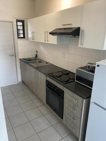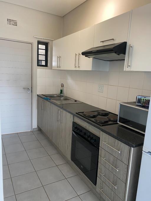 Upon arrival you are welcomed into an open plan kitchen with cupboards, stove, oven , extractor fan and has space for a single door fridge. Nesting into living area with a beautifully printed in green wall which makes the unit more exquisite leading out to the balcony perfect for sunrises over a cup of coffee