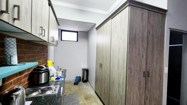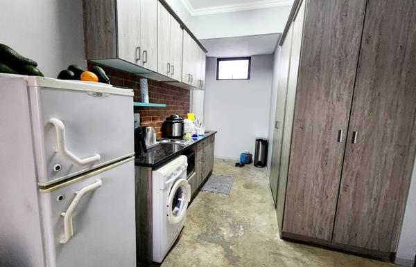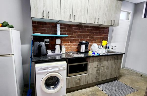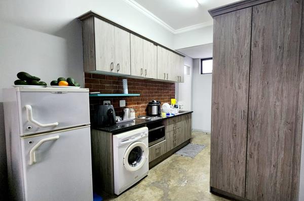 The kitchen is modern with ample cupboard space and space for one appliance. This is perfect for students, young executives and the young at heart.