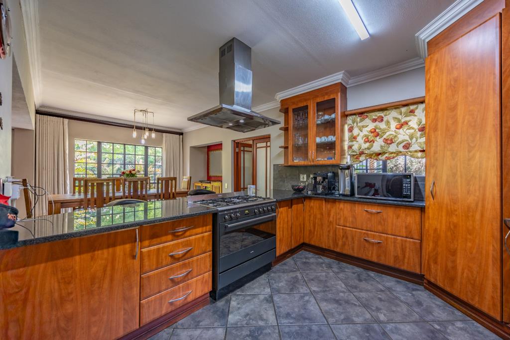 Discover this inviting 3-bedroom, 3-bathroom residence available for rent in the esteemed Cornwall Hill Estate, Centurion. This spacious home features an open-plan design, seamlessly connecting the lounge, dining area, and kitchen. The well-appointed kitchen boasts extensive warm wooden cabinetry, dark granite countertops, and a gas range, complemented by a functional island and ample natural light. Consistent tiled flooring flows throughout the main living spaces, creating a cohesive and practical environment for daily living.