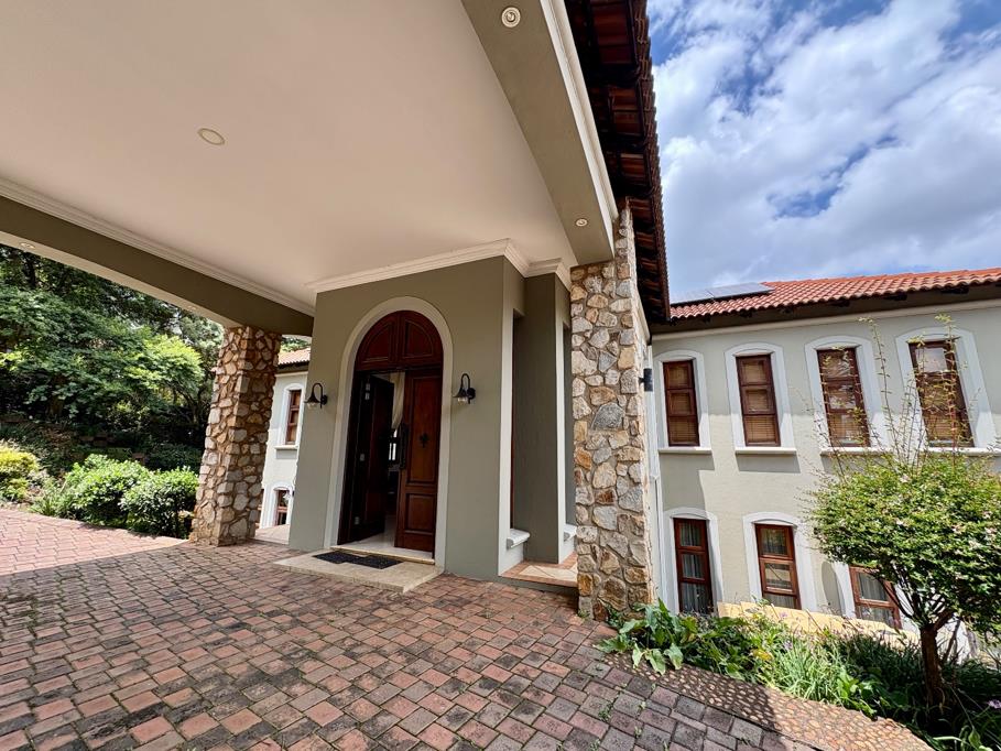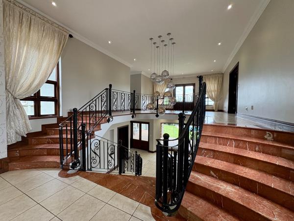 Presenting an exceptional residential rental opportunity within the esteemed Cornwall Hill Eco Estate in Centurion. This expansive multi-level residence, boasting a generous floor size of 1180.00 sqm on a 5000.00 sqm erf, offers a sophisticated living experience. The grand entrance hall, featuring a striking double marble staircase with ornate wrought iron railings and high ceilings, immediately conveys an impression of elegance. The property comprises four spacious bedrooms, each with an en-suite bathroom, complemented by a guest toilet for convenience. Four distinct lounges and a dedicated dining room provide ample space for both formal entertaining and relaxed family living, enhanced by an open-plan design and air conditioning throughout.