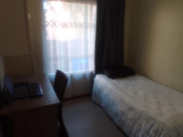 A furnished bedroom is available in a professional house in Die Hoewes near the Gautrain. The house has uncapped Wi-Fi., and the house does not get load-shedding.