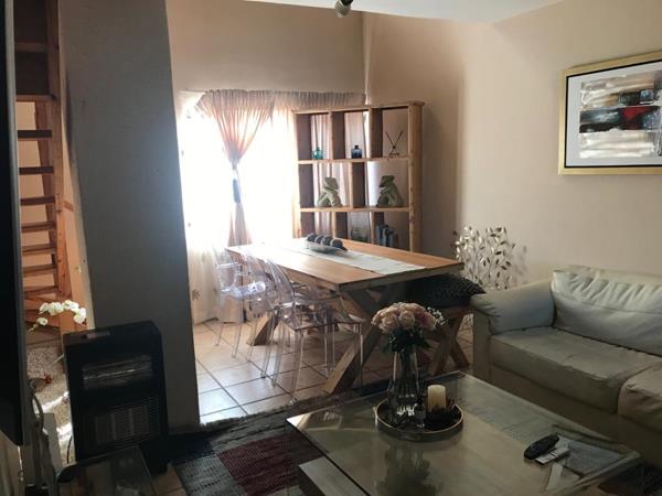 On the upstairs level of the property you will find a spacious living area that leads to a huge patio with a built-in braai. The unit is fitted with a pre-paid electricity meter.