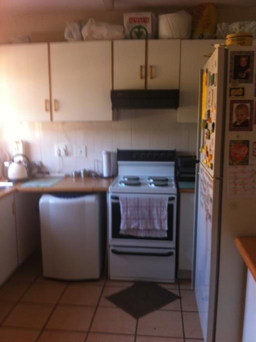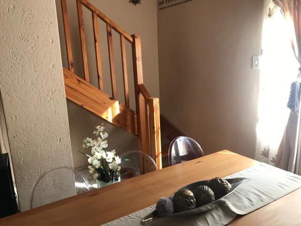 On the upstairs level of the property you will find a spacious living area that leads to a huge patio with a built-in braai. The unit is fitted with a pre-paid electricity meter.