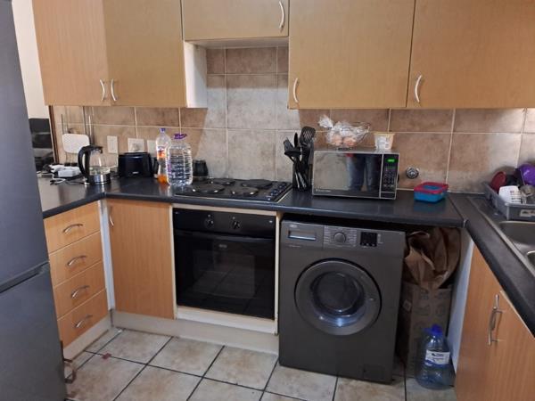 lock-up garage. Semi-open plan kitchen with oven and hob. Covered patio