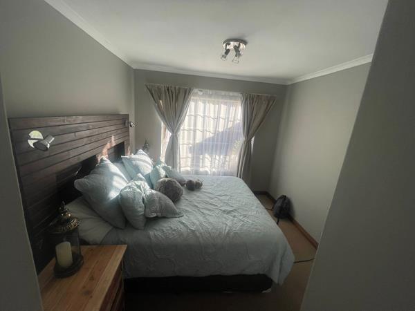 The beautiful townhouse consists of 3 bedrooms and 2 bathrooms, spacious living areas, garden, patio, built-in braai and a splash pool.