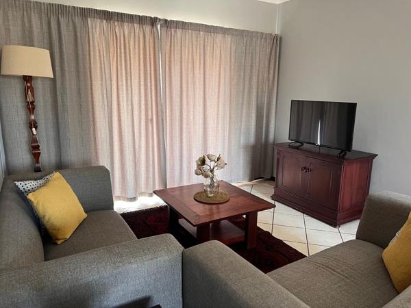 This fully furnished two-bedroom apartment is available for short- and medium-term stays, with a minimum rental period of one month, payable upfront. The apartment is serviced weekly, including the replacement of clean linen and towels. It accommodates a maximum of two adults and two children. Rates can be negotiated based on smaller groups. Identification and references are required as a once-off for access to the security system.