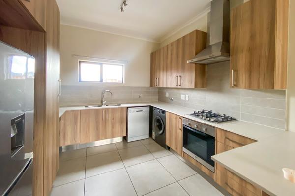 Trendy luxury red face-brick stack unit boasts a functional kitchen with Sahara natural
