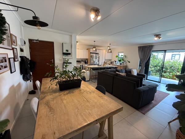 The open-plan design enhances the homes light-filled, welcoming atmosphere. The living area flows effortlessly into the well-appointed kitchen features a breakfast nook, gas hob, electric oven, ample built-in cupboards, and space for three appliancesideal for both relaxed daily living and entertaining.