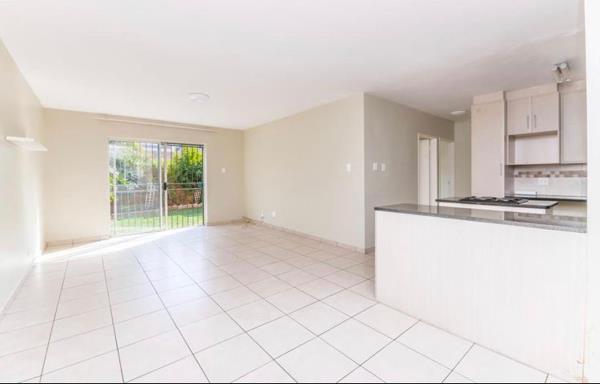 The unit is spacious and has space for a dining room set and lounge set, with an open plan kitchen.