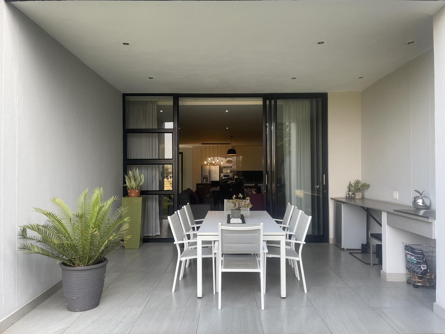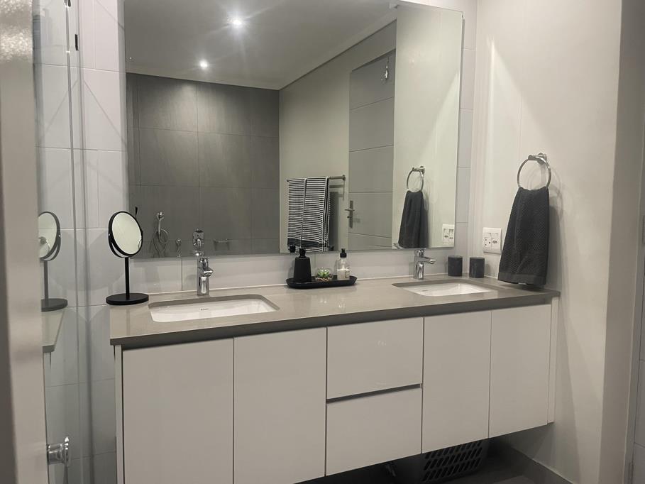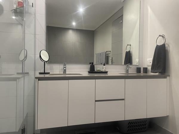 This stunning 2-bedroom, 2,5-bathroom ground floor apartment (Block B) with direct access from the Double Garage. This spacious apartment boasts an open plan living area that seamlessly extends to a patio equipped with a built-in gas braai, perfect for entertaining or simply enjoying a tranquil evening at home. Gas and induction stove.