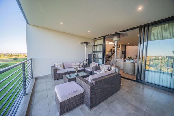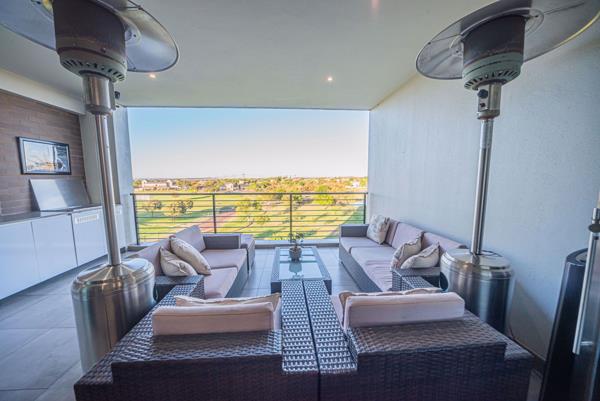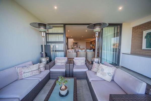 The covered balcony with built in gas braai is large enough to accommodate friends for sundowners with a view.