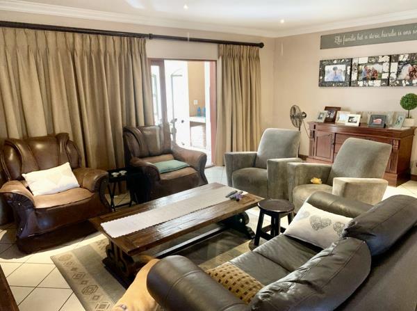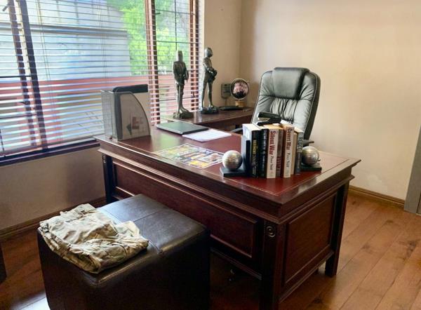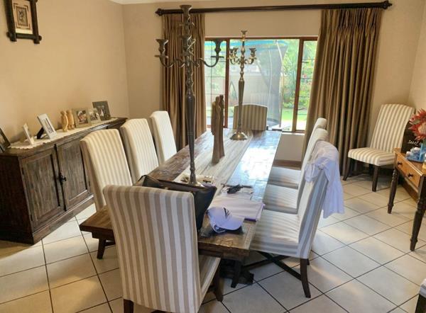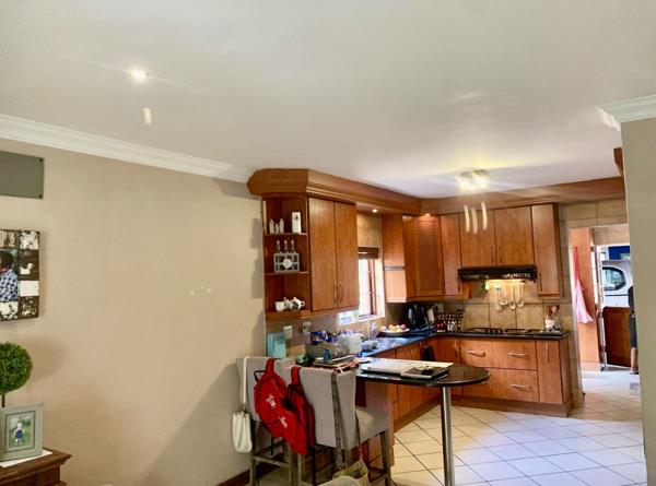 A large open plan kitchen gas hob with a scullery, a dining room, a formal lounge, informal loungetv area, an enclosed braai room built in braai with sliding doors leading out onto the spacious garden with ample space on the grass for children to play as well as a swimming pool.