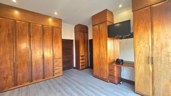 Step outside to a spacious covered patio, complete with a built-in braai, perfect for entertaining or enjoying quiet moments outdoors. This area overlooks a private, well-maintained garden with an irrigation system, offering a tranquil retreat.